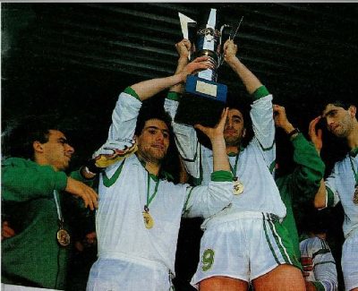 Algerian players with the 1990 AFCON trophy