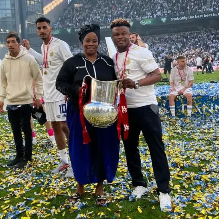 Amoo shared a picture of himself with his mother at the title celebration with his teammates and accompanied the post on social media with a long message.