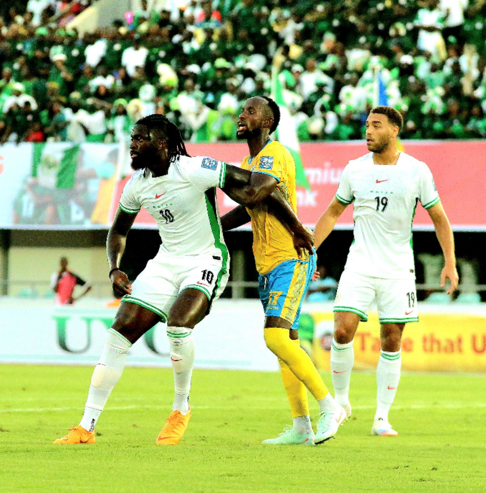 The Super Eagles, after an impressive ball possession, had the chance to break the deadlock in the 30th minute, but Moses Simon’s shot was blocked by the Amavubi’s defence.