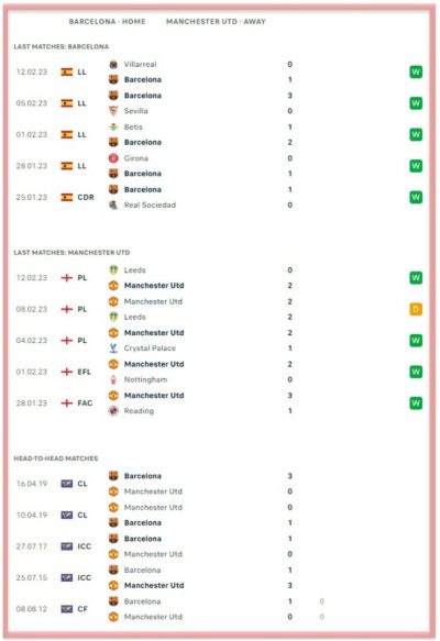 According to a review of their previous head-to-head matchups dating back to April 23, 2008, Barcelona have prevailed in four matches and Manchester United in one, with one match ending in a draw.