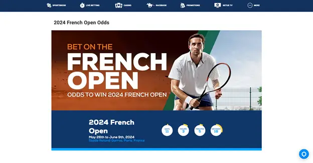 BetUS stands out in the crowded sports betting market, especially when it comes to betting on the French Open. Celebrating over 30 years of service, BetUS offers a robust and user-friendly platform that caters to both novice and seasoned bettors. The site is known for its extensive sports coverage, including a dedicated section for tennis betting. What sets BetUS apart is its comprehensive betting options and live betting feature, which allows you to place bets in real-time as the matches unfold.