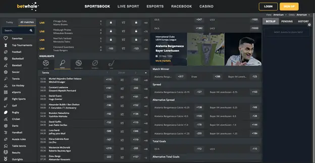 BetWhale offers an extensive selection of bets for Roland Garros. You can place wagers on outright winners, individual matches, set scores, and more. The odds for the top favorites are attractive and competitive. Novak Djokovic is listed at +250, Carlos Alcaraz at +180, and Jannik Sinner at +350. These odds demonstrate BetWhale’s commitment to providing value and a wide variety of options for tennis betting enthusiasts. The platform also supports live betting, allowing you to place bets as the action unfolds.