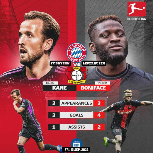 Yet Leverkusen – aiming to win their opening four Bundesliga games for the first time in the club’s history – have their own striking sensation whose scintillating form has helped propel Bayer forward. The only player this season with six goal involvements (four goals, two assists), Victor Boniface has made a breathtaking beginning to life in the Bundesliga since his summer move to the BayArena. Surrounded by eagle-eyed teammates like Jeremie Frimpong, Jonas Hofmann, Granit Xhaka and, of course, attacking wizard Florian Wirtz, the 22-year-old Nigerian Boniface – the Bundesliga Rookie of the Month for August – has excelled among top company. As has Kane, whose partnership with Alphonso Davies – the Bundesliga’s joint-top assist provider so far this term – has been a sight to behold.