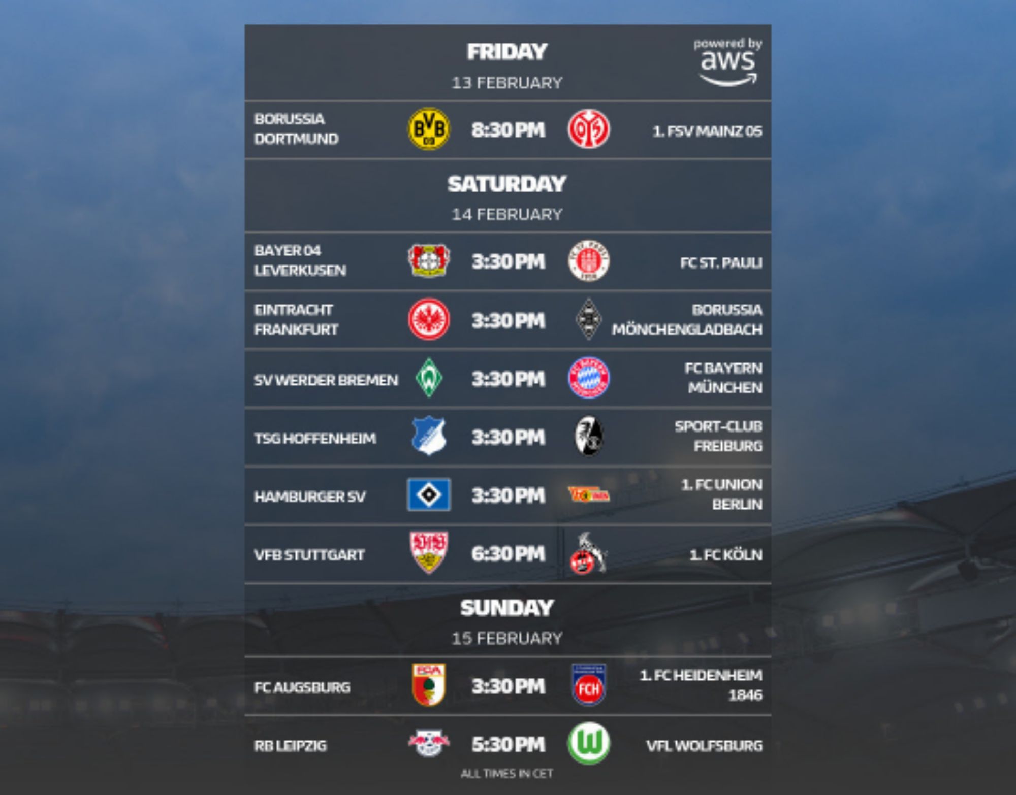 Bundesliga 2025/2026 Matchday 22 kicks off with two in-form sides meeting in Friday’s curtain-raiser as high-flying Borussia Dortmund host resurgent 1. FSV Mainz 05 at Signal Iduna Park.