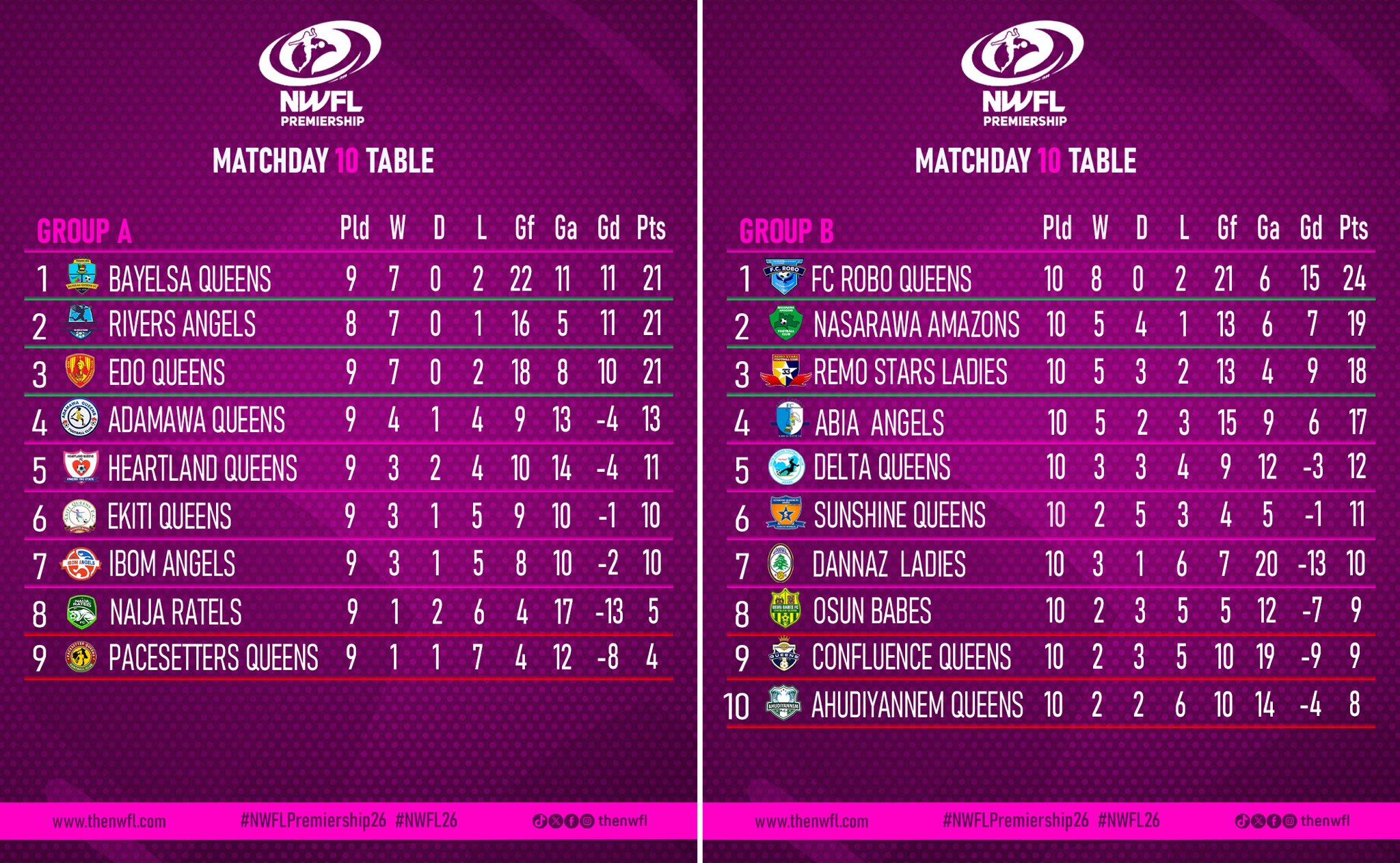 Throughout the first stanza, Nasarawa Amazons finished their gameweeks being second or third in Group B, while Pacesetter Queens have consistently been at the bottom of Group A in ninth place.