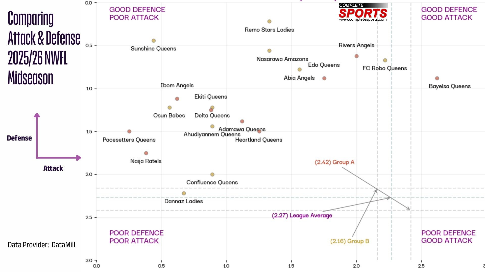 To wrap up this NWFL 2025/26 midseason data report, let’s zoom in on team performance. Adamawa Queens got off to a bright start in a group of death but their resolve was quickly dissolved and they experienced a sudden descent.