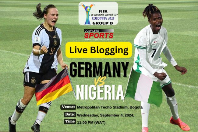 Completesports.com’s Live Blogging of the Colombia 2024 FIFA U-20 Women’s World Cup Group D match-day 2 game between Die Nationalelf of Germany and the Falconets of Nigeria at Metropolitano Techo Stadium, Bogota.