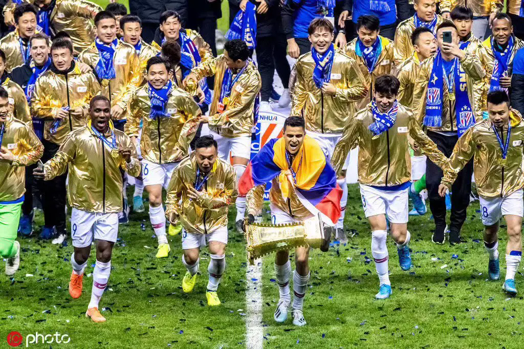 Shangha Shenhua thrashed Shandong Luneng 3-0 in the second leg of their final fixture at the Hongkou Football Stadium on Friday.