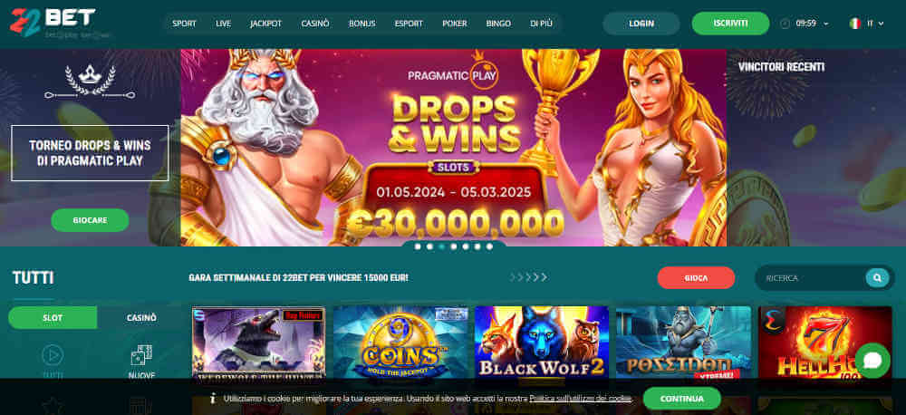 Il casinò è regolato dalla licenza di Curacao, garantendo un ambiente di gioco sicuro. 22bet offre una vasta gamma di giochi da casinò, inclusi slot, giochi da tavolo e opzioni live, forniti da provider come Betsoft e iSoftBet, che sono fra i migliori in assoluto. I metodi di pagamento includono anche carte di credito, e-wallet e criptovalute, permettendo ai giocatori italiani di effettuare depositi e prelievi con incredibile facilità.