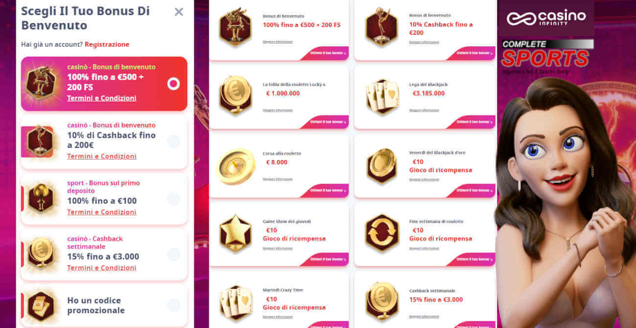 № 3. Infinity - Casino Bonus 100% fino a € 500 + 200 giri gratis