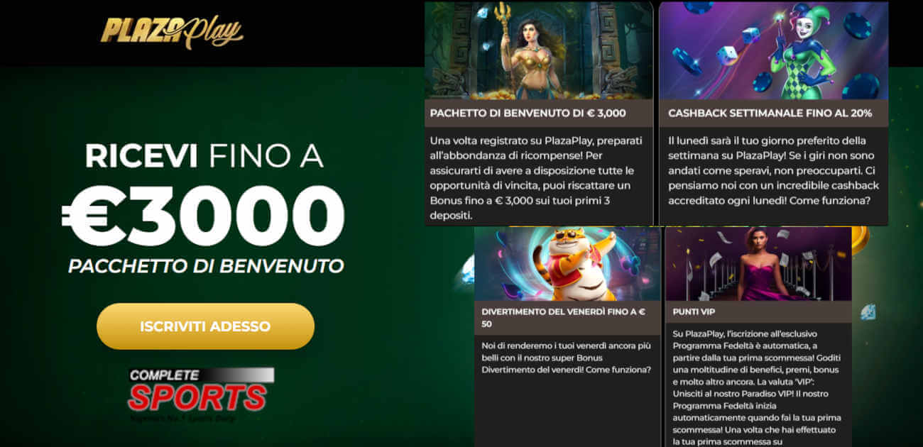 - Plazaplay — Lotterie continue e bonus fino a € 3.000.