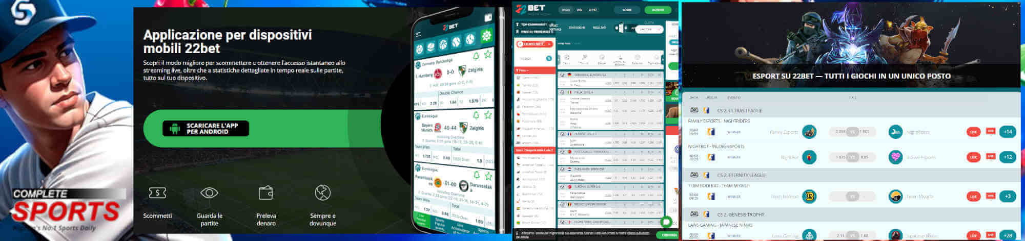 | Tipi di scommesse | Scommesse sportive, Scommesse Live, Virtuali ed Esports |