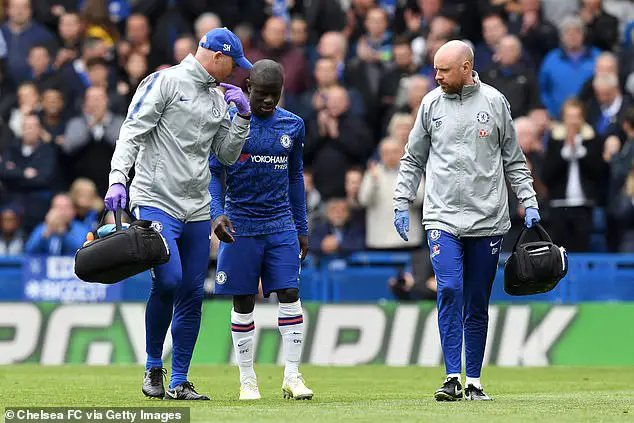 Kante was forced off injured 10 minutes into the Blues’ 3-0 win over Watford in the Premier League at Stamford Bridge on Sunday and will now miss Chelsea’s return leg in the Europa League against Frankfurt at home on Thursday and Sunday’s final Premier League game of the season at Leicester City.