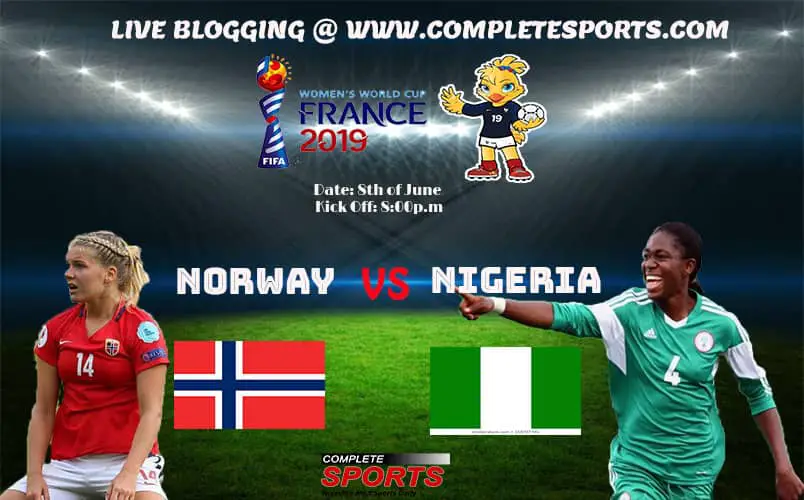 Welcome to the Completesports.com’s live blogging of Nigeria’s Super Falcons vs Norway – a Group A game at the 2019 FIFA Women’s World Cup in France