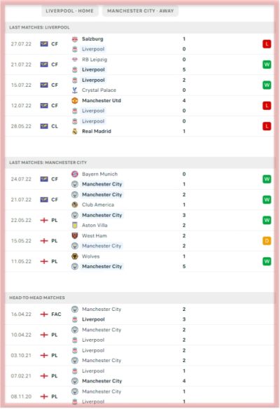 Each club has scored at least once in four of the five most recent meetings. There have been four or more accomplishments in the prior four gatherings. The most recent match ended in a Liverpool victory, 2-3.