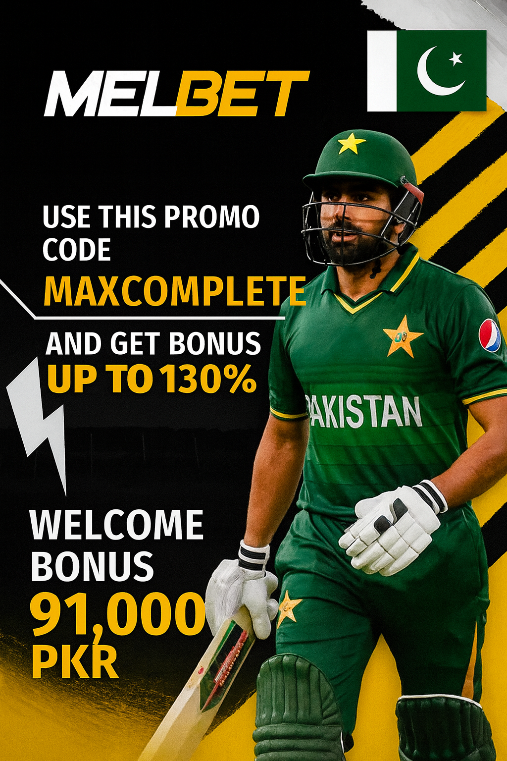 Melbet’s updated 2025 sports welcome bonus is one of the strongest in Pakistan for new bettors. When you register and enter the promo code MAXCOMPLETE, you’ll receive a 130% first-deposit bonus up to 91,000 PKR credited instantly after your first deposit.