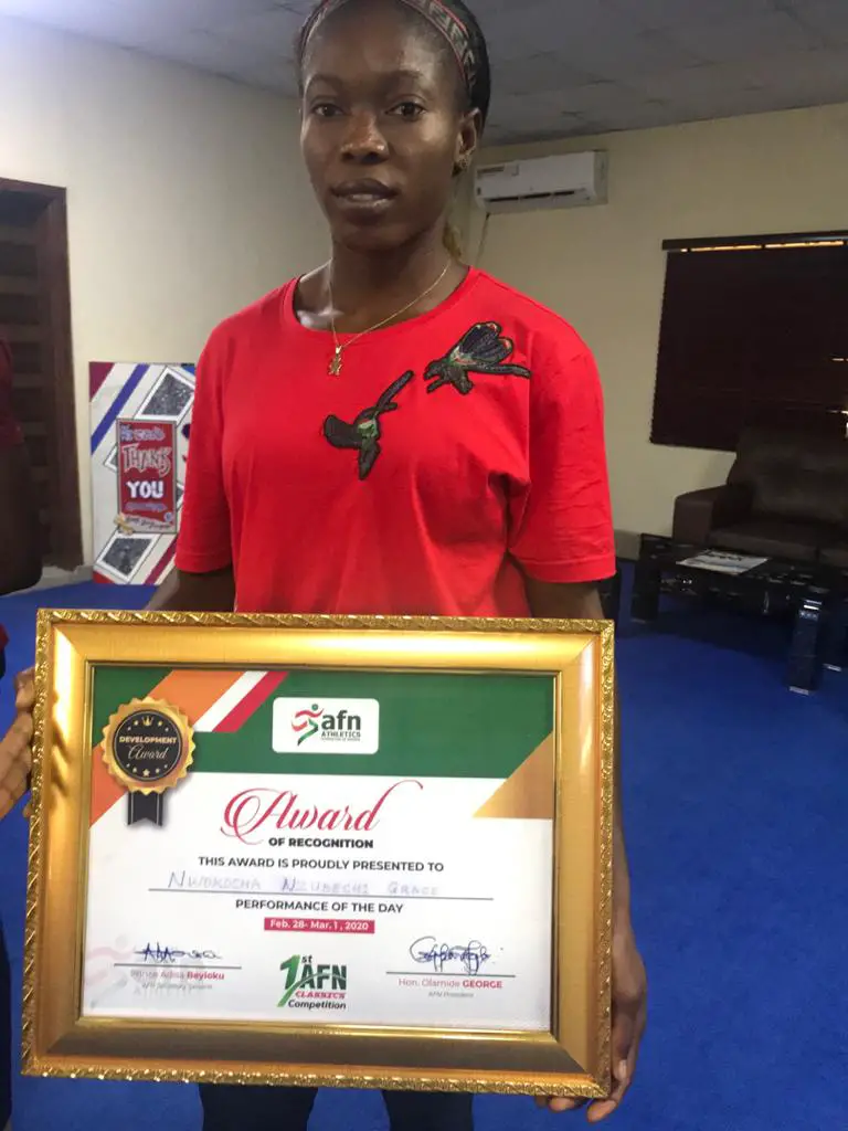 Her performance fetched her triple awards viz the best athlete in the women’s blue ribband race,best overall female athlete and performance of the day.