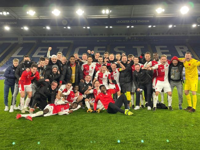 Peter Olayinka has celebrated Slavia Prague’s impressive 2-0 away win against Leicester City at the King Power Stadium on Thursday night, reports Completesports.com.