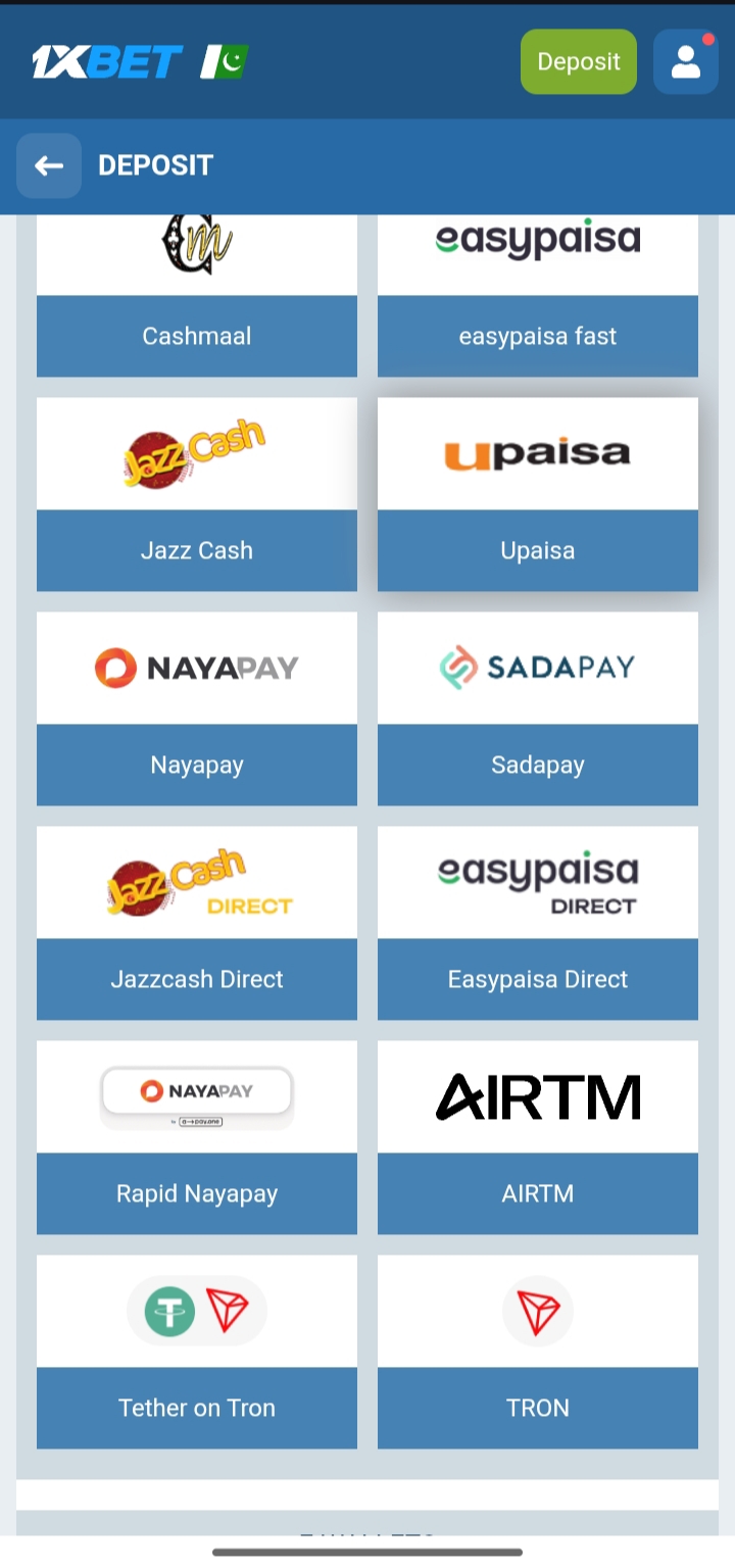 Here is a full breakdown of accepted payment methods for Pakistan players at 1xBet: