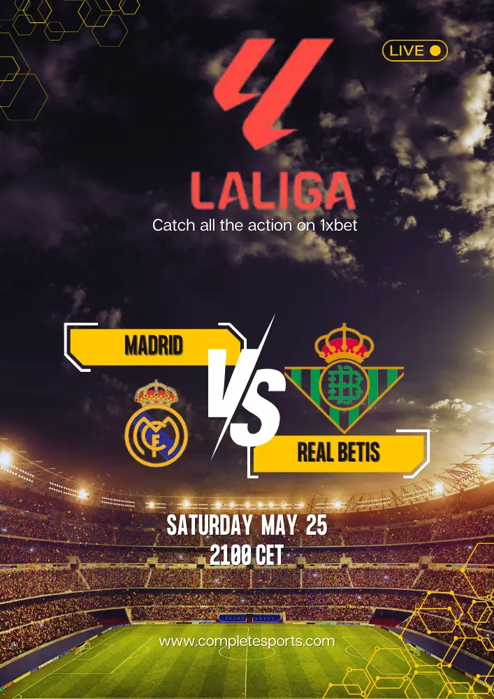 Live streaming for the Real Madrid vs. Real Betis match will be available on 1xBet. Gamblers can access the game through the provided information. Enjoy the excitement of the match and place your bets live.
