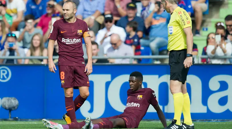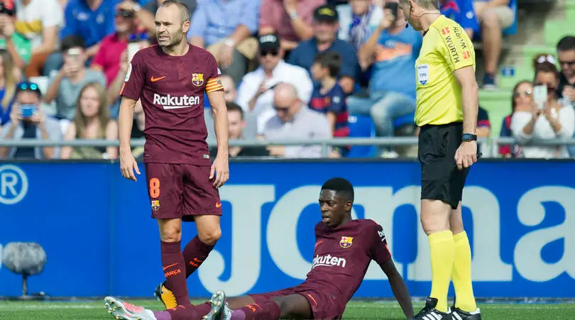 Ousmane Dembele picked up a hamstring injury that has left him a doubt for Paris Saint-Germain’s return leg against Arsenal…