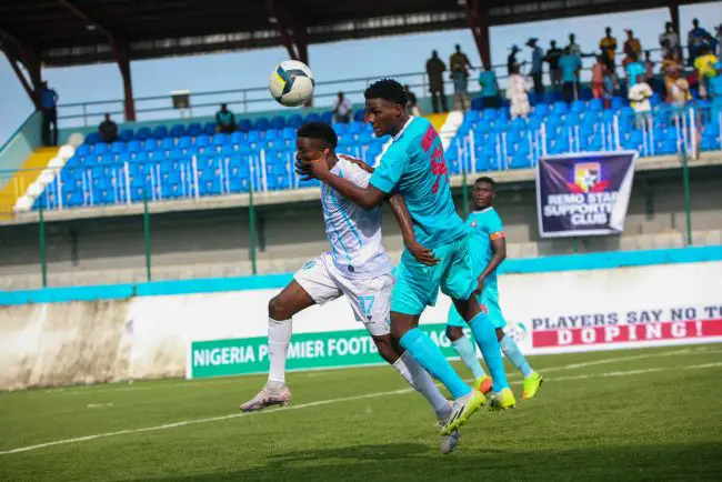 Remo Stars goalkeeper Kayode Bankole is in ecstatic mood following the club’s 2-1 victory over Sporting Lagos in a Nigeria…